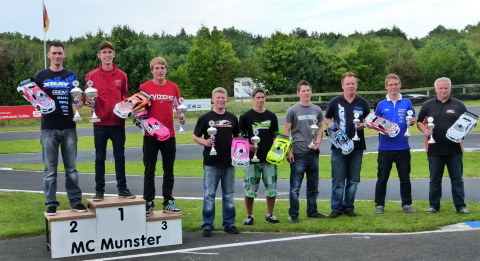 Eric Dankel ist Deutscher Meister VG10 2012. Der Capricorn-Pilot setzte sich im 40-minütigen Finale der Deutschen Meisterschaft VG10 in Munster mit einem Vorsprung von 13 Sekunden gegen Xray-Fahrer Dirk Wischnewski durch. Das Podium komplettierte Dominic Greiner (Kyosho) als Dritter. Auf Position vier kam Ronald Völker ins Ziel, der Shepherd-Fahrer wurde jedoch wegen eines zu großen Tanks disqualifiziert und demzufolge nur als Zehnter gewertet. Platz vier ging an Arndt Bernhardt, der Serpent-Pilot war damit auch der bestplatzierte Teilnehmer aus dem Sportkreis West. Toni Gruber (Serpent) wurde Fünfter vor Patrick Nähr (Shepherd), Daniel Horn (Xray), Rico Kröber (Xray) und Andreas Giesa (Serpent) Text und Bilder von nitro-west.de