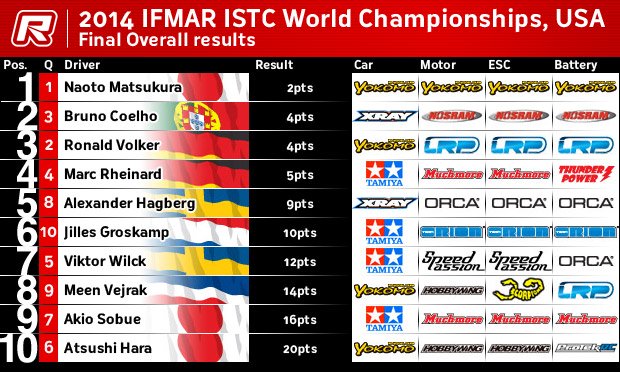13.10.2014 - 1:10 Weltmeisterschaft Kissimmee Florida « Neuerer Beitrag Älterer Beitrag » Naoto Matsukura ist der neue 1:10 elekto Weletmeisterhttp://events.redrc.net/ Eintrag von: Oliver Wahl