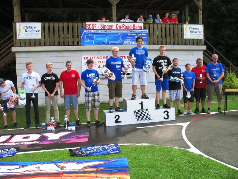 Hier lief alles auf einen Dreikampf zwischen den beiden Jungendlichen Clemens Neubert auf XRAY und Tim Kohmann (Tamiya) mit dem Oldie Reiner Mürder (HB) hinaus.