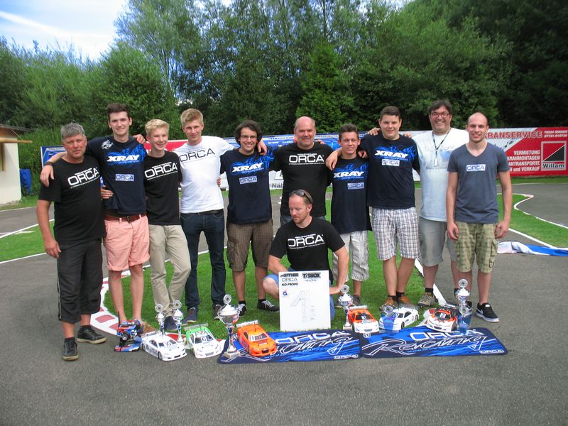In Modified startete Tim Wahl und in der Hobby Klasse Clemens Neubert und Berd Boppenmaier für die MCGS.Vali, Tobi und Tim reisten schon am Donnerstag an, um unter professioneller Anleitung von Andreas Myrberg diverse Teile (Dämpfer, Federn, ...) für ihre XRAY's zu testen und um ausgiebig zu trainieren, was sich am Ende auszahlen sollte.