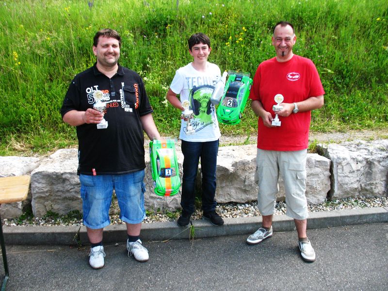 Max Mächler, Tobias Vogel und Valentin Hettrich, das waren die drei Schnellsten in der Sport Klasse, Marco Kaufmann, Tim Wahl sowie Dionis Stadler die Schnellsten in Modified Klasse.Am Sonntag Morgen dann wie üblich in diesem Sommer, nix mehr Sonne, sondern nur noch Regen, Regen. Gegen 11:00 Uhr kam dann zum Glück wieder die Sonne heraus und so konnten nach diversen "Trocknungs-Aktionen" alle Finalläufe auf trockener Bahn gefahren werden.