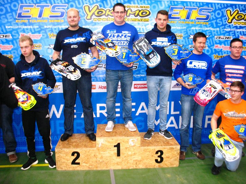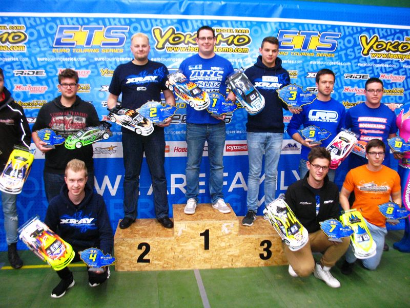 Einige der XRAY Team Fahrer setzten das neue T4 ALU Chassis ein, mit dem sich der XRAY T4 auf dem ETS Teppich deutlich einfacher fahren ließ, was sich besonders bei Tim in Modified positiv auswirkte.Nach den Vorläufen platzierte sich Valentin Hettrich mit Startplatz 4 für das Stock A-Finale, Tobias landete im B-Finale und Clemens im C-Finale.