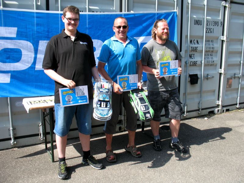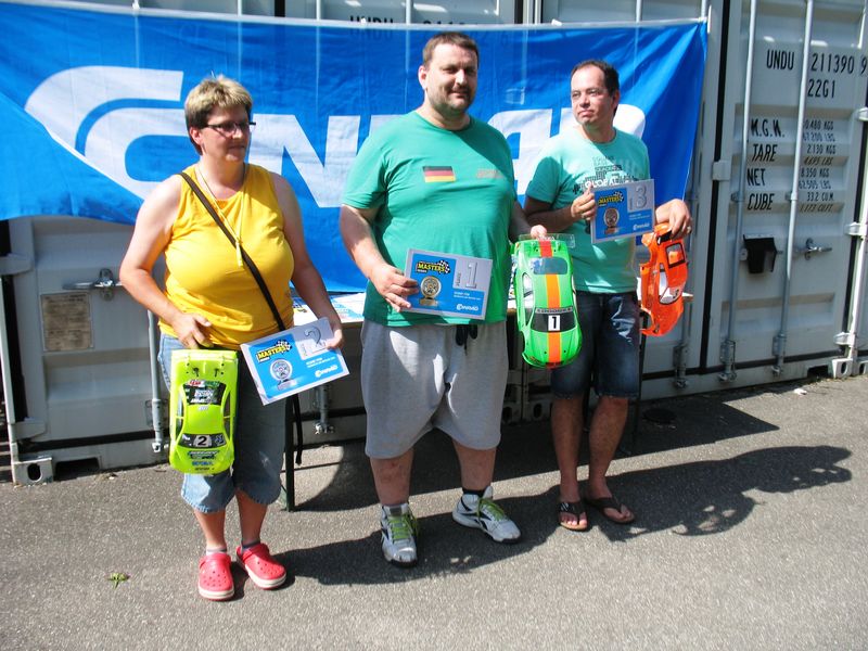 Tim nutzte das Wochenende daher für ausgiebige Tests seines XRAY's T4 unter Rennbedingungen (und da er viel schneller als die Sportfahrer war konnte er natürlich auch das Überholen trainieren).Mit einer tollen Siegerehrung in der brütenden Hitze ging das erste MCGS CONRAD Racing Weekend in Marbach zu Ende.