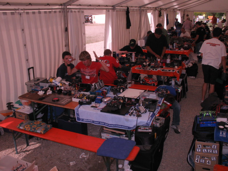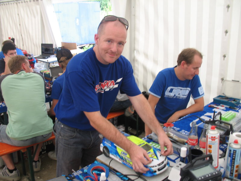 Die 1:10er Outdoor DM 2008 wurde im Bayrischen Mettenheim (liegt ca. 80km hinter München in Richtung Passau) ausgetragen. Von unserem Verein waren Dirk und Tim in der Sport Klasse am Start und als Unterstützung für die zwei war noch der Max dabei. Wie die meisten Fahrer reisten auch wir am Donnerstag an, um uns im großzügigen Fahrerlagerzelt einzurichten und um noch ein paar Trainingsrunden zu drehen.