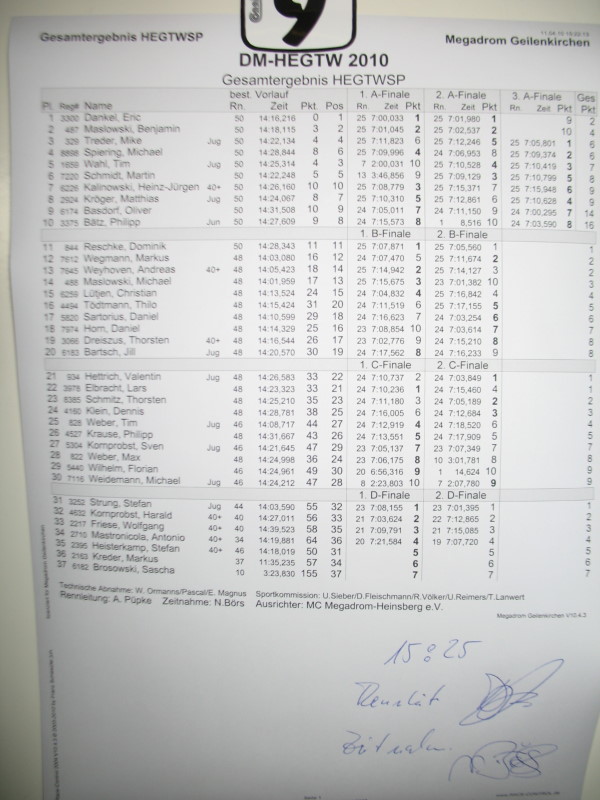 Platz 10. Phillip BätzValentin Hettrich, der in den beiden C-Finalläufen 2 spektakulär und geniale Überholmanöver fuhr gewann verdient das C-Finale.