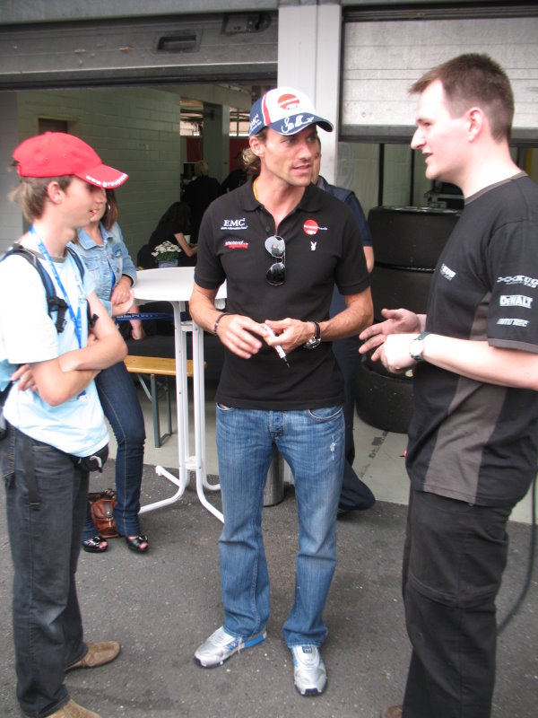 Geduldig beantworteten sie unsere Fragen zur Technik, erklärten uns,was alles am Fahrzeug eingestellt werden kann. Sascha zeigte uns die Renntransporter in dem sich die Datenaufzeichnung befindet. Mit ihr kann man genau sehen kann was das Auto und der Fahrer auf einer Runde so macht (Bremsdruck, Lenkeinschlag, Gasstellung...).