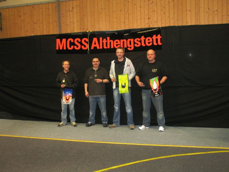 Beim Letzten SK-Süd Lauf, der Indoor Saison 2010/2011 waren 63 Fahrer in den Klassen Hobby, Sport, Modified EB & EA in Althengstett am Start. Zusätzlich waren noch 13 Fahrer aus der Moosie Master Serie in Althengstett.In der Sportklasse waren die derzeit schnellsten Fahrer (Martin H., Marco K. & Daniel W.) aus dem SK-Süd am Start. Natürlich waren auch unsere schnellen Jungs Tim, Tobias, Valentin und Steffen Künzel mit dabei. Aber auch in der Modifiedklasse waren mit Eric, Daniel und Max starke Fahrer von der MCGS dabei, ebenso wie in der Hobby Klasse in welcher der aktuell führende im SK-Süd Kai, sein Bruder Marc und Dirk am Start waren. Insgesamt waren somit 9 Fahrer von der MCG-Strohgäu in Althengstett am Start. Wie üblich bei den SM-Läufen im Süden wurden am Samstag drei und am Sonntag Morgen zwei Vorläufe gefahren. Die Finalläufe starteten am Sonntag Nachmittag.